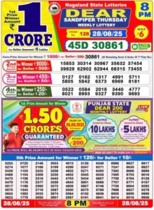 Lottery Sambad Today’s Result August 28, 2025 : Nagaland State Lottery Result 6 PM