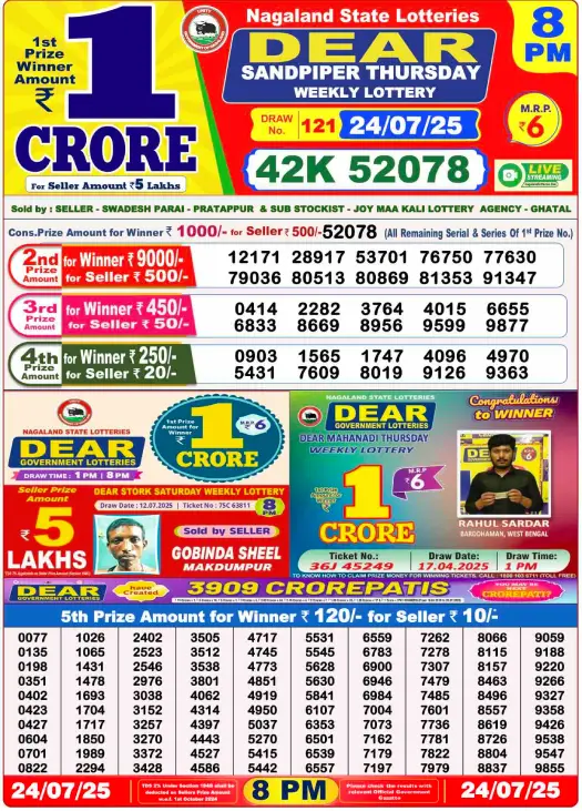 The much-awaited Lottery Sambad results for 25th July 2025 are finally out! Thousands of hopeful participants tuned in for the Thursday draws of the Sandpiper, Dancer, and Mahanadi Weekly Lotteries, hoping to hit the jackpot. If you’ve participated in today’s draws, this detailed report brings you everything — from top prize numbers to complete 5th prize listings — in a simple, well-organized format.