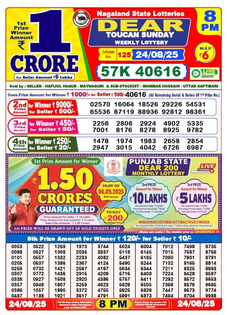 The results for the Lottery Sambad 24.08.2025 (8 PM Draw) have been officially declared. Today’s evening draw featured the Nagaland State Toucan Sunday Weekly Lottery, one of the most anticipated Sunday night draws that brings excitement across several states.