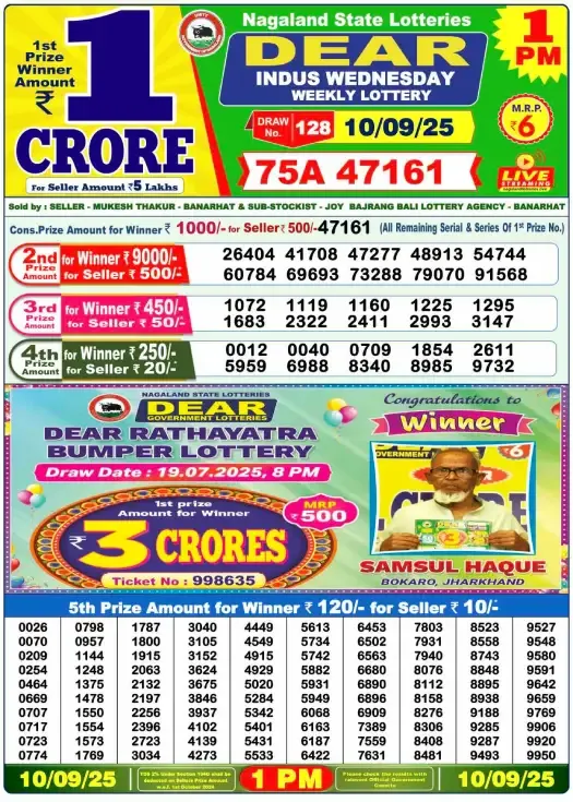 Lottery Sambad Today’s Result September 10, 2025 : Nagaland State Lottery Result 1 PM