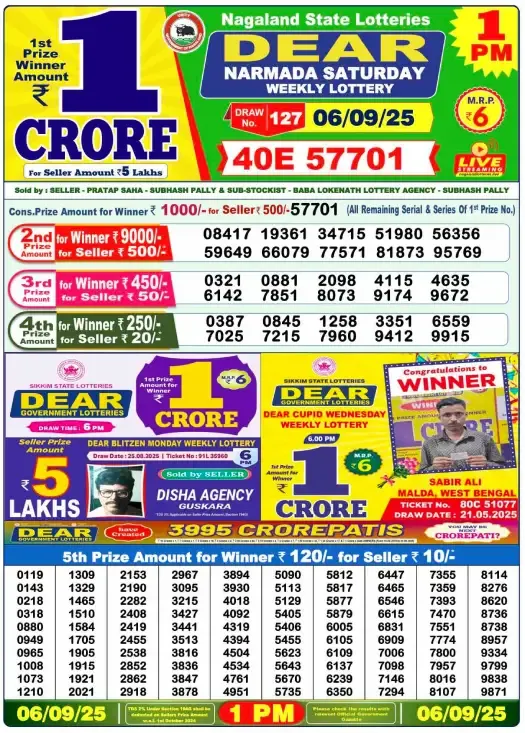 Lottery Sambad Today’s Result September 6, 2025 : Nagaland State Lottery Result 1 PM